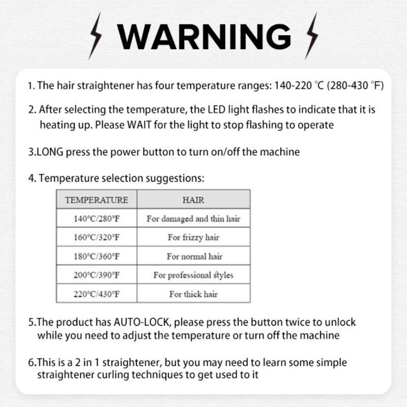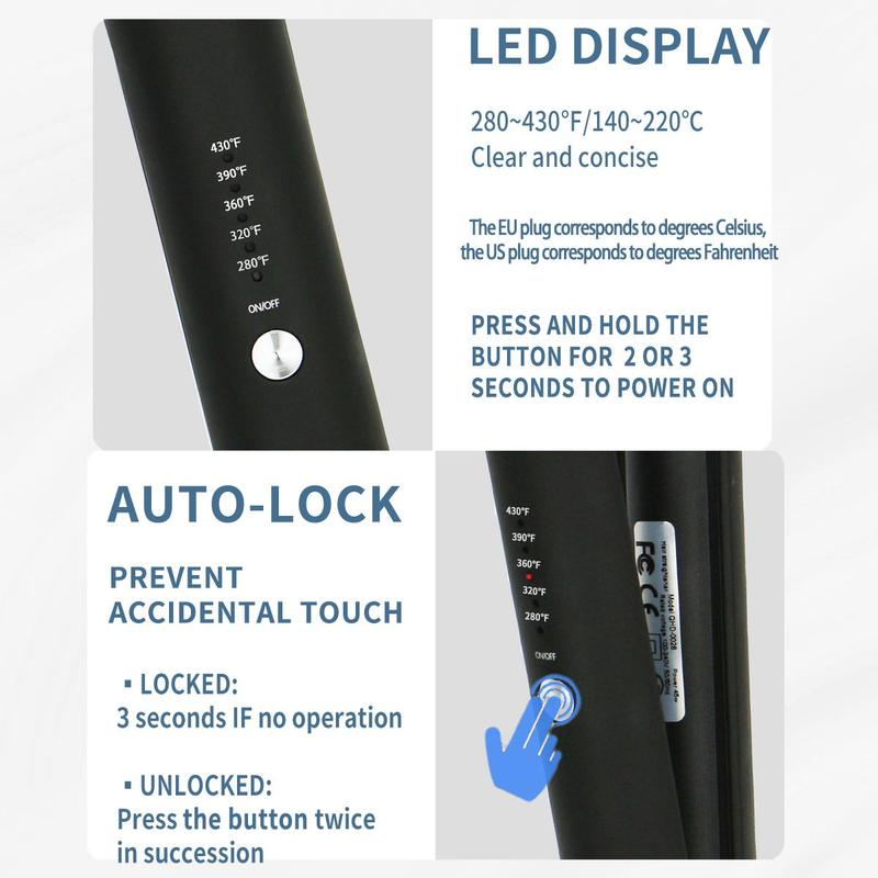 【Safety Ensured】: Engineered with user safety in mind, the hair curler and straightener features an LED display and a design that prevents hair from getting kinked during the styling process, allowing for a worry-free styling experience.